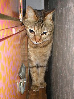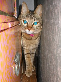 みーやもタンスから降りて来て勝手口の前で