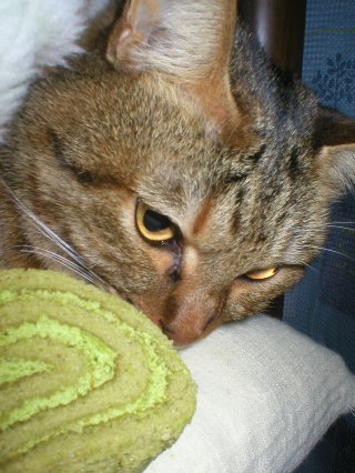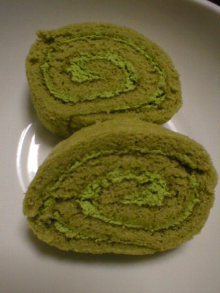 一方、こちらは頂き物の抹茶のロールケーキ♪