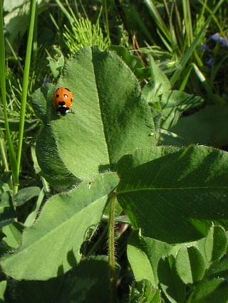 ムラサキツメクサの葉っぱにナナホシテントウ♪