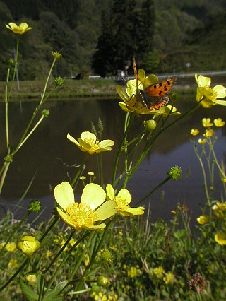 ウマノアシガタにチョウチョがひらひらと(^^)。
