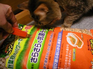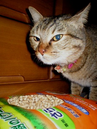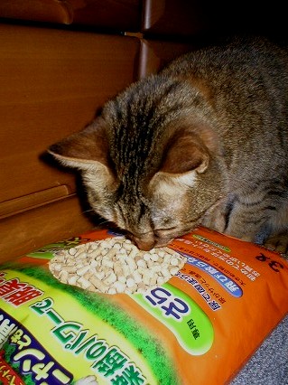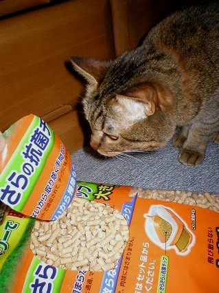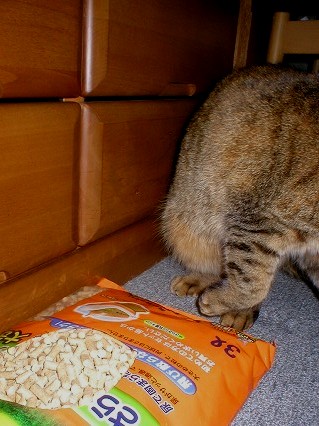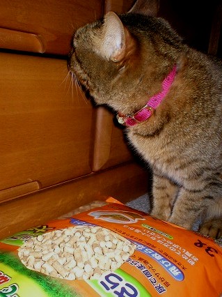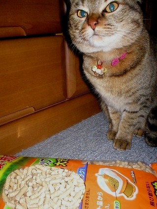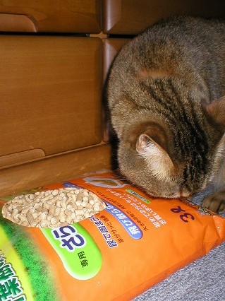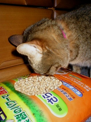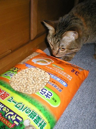これは、おニューの猫砂です。