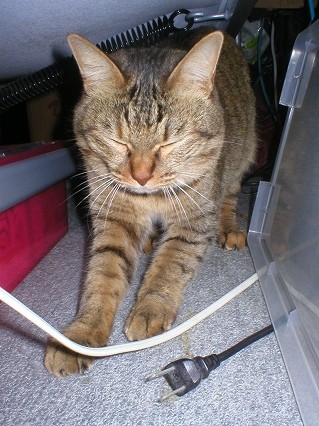 案の定、ヤジ猫がわざわざ起き出して来た(^◇^)。