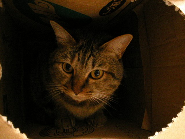 みーやが箱の中から見張ってた。