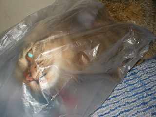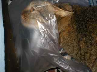 袋から追い出されても、更に外側をクンクン、ペロペロ。。。