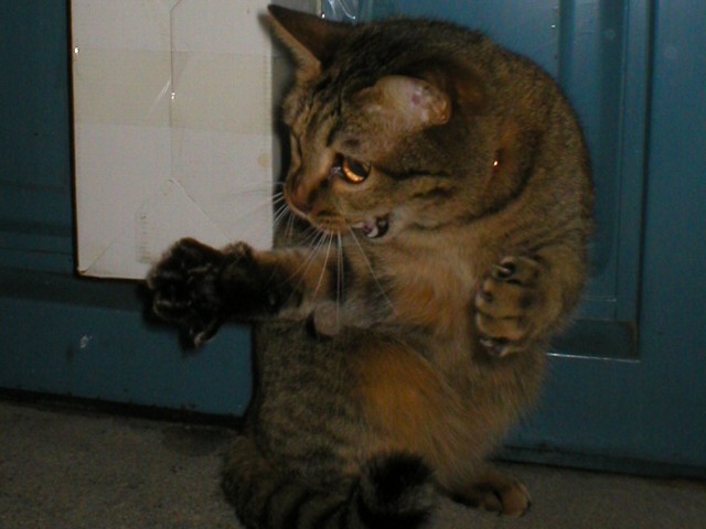 目一杯爪を伸ばした猫パンチをモロに食らってしまった!